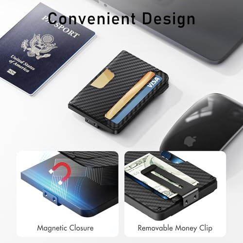 • 【Lightweight Convenient and Durable】Say goodbye to bulky Wallets with our slim design. This slim wallet for men With a compact size of 4.3 x 3 x 0.6 inches, it offers increased durability and convenience, fits seamlessly into your suit pants, blazer, or shorts pockets. Experience the art of elegance with the cool wallet's magnetic closure. Not only will you feel convenient, but also impress those around you at business and social events.