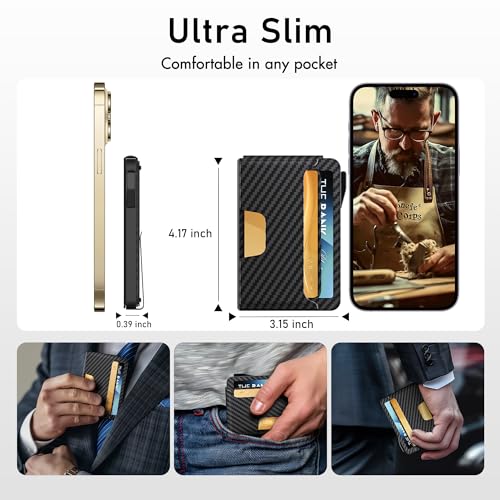 Wallet for Men, Mens Wallet Minimalist Slim Wallet, Cash Slot, ID Window, Credit Card Slots, RFID Blocking Smart Pop-up Money Clip, Metal Aluminum Credit Card Holder Bifold Wallet(Carbon Fiber Black) 5