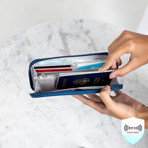 • MULTI-PURPOSE ORGANIZATION is at the heart of this wallet. Thoughtfully designed the keep multiple currencies organized with 2 currency pockets, 1 center zip pocket for coins, 1 ID window for Global Entry card or License, and 6 card slots. Holds mobile phone(s), passports, even vaccine cards. A rear slip pocket is ideal for receipt and tickets.
