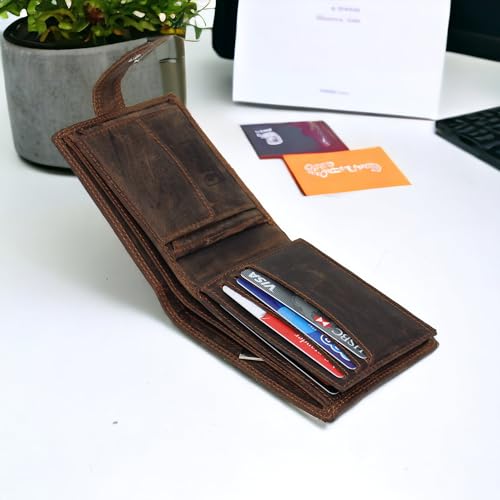 More information about Wallets Men Anti-Theft RFID Blocking Bifold Leather Wallet Genuine Distressed Hunter Leather Passcase Wallet Money Cards Coin Organiser Purse Gift For Men M80 Dark Brown