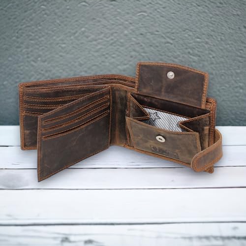 Wallets Men Anti-Theft RFID Blocking Bifold Leather Wallet Genuine Distressed Hunter Leather Passcase Wallet Money Cards Coin Organiser Purse Gift For Men M80 Dark Brown 6