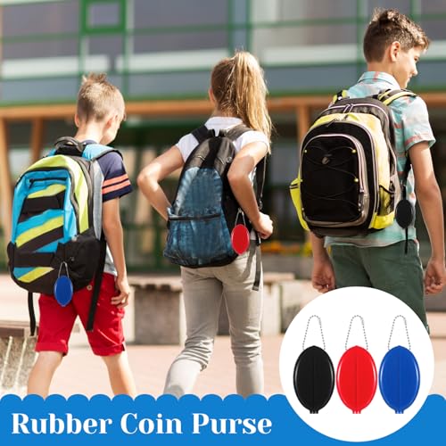 3 Pcs Oval Squeeze Coin Purse, 2 X 3 Inches Oval Coin Purse Portable Rubber Coin Purse with Chain Oval Change Purse for Coins for Men Women Travel (3 Colors) 5