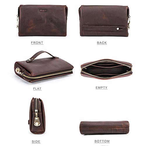 • Leather Men Clutch Purse Bag: Mens wristlets clutch wallet for men is made of high-quality Oil natural cow leather, soft, delicate & shiny. You have a unique hand purse, because the natural cowhide streaks may appear in different places.