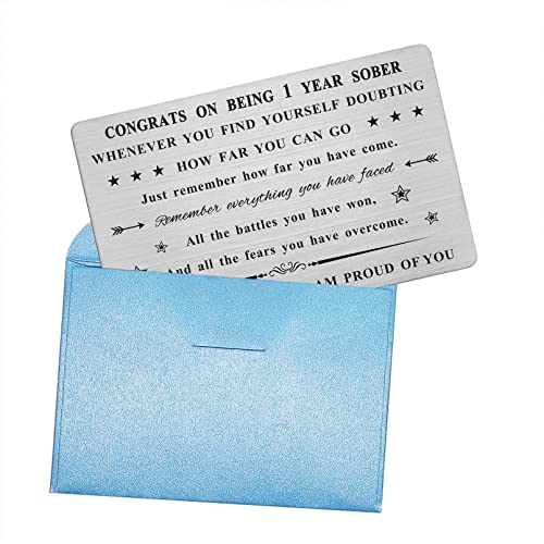 HOT ! Emideary 1 Year Sobriety Engraved Wallet Card, One Year Sobriety Gifts for Women Men, 1 Yr AA Sober Anniversary Metal Card