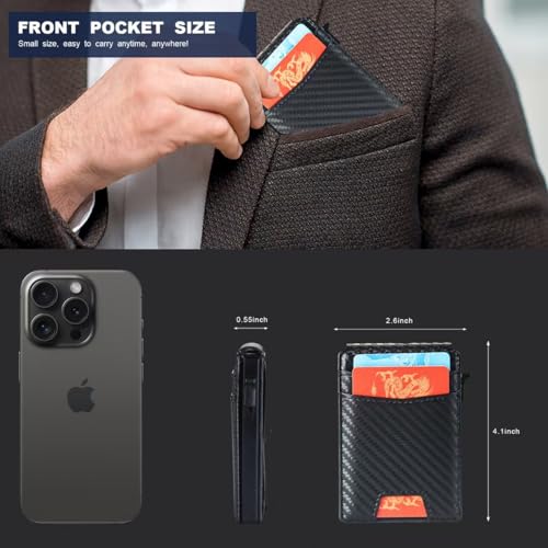 • 【CLEAR ID WINDOW】On the inside of the carbon fiber wallet,Experience effortless organization with 9 credit card slots, a money clip, and an ID window which has , which allows you to swipe the card without removing the card. It can be used to store ID card, work card, driver license, access card, traffic card, etc.
