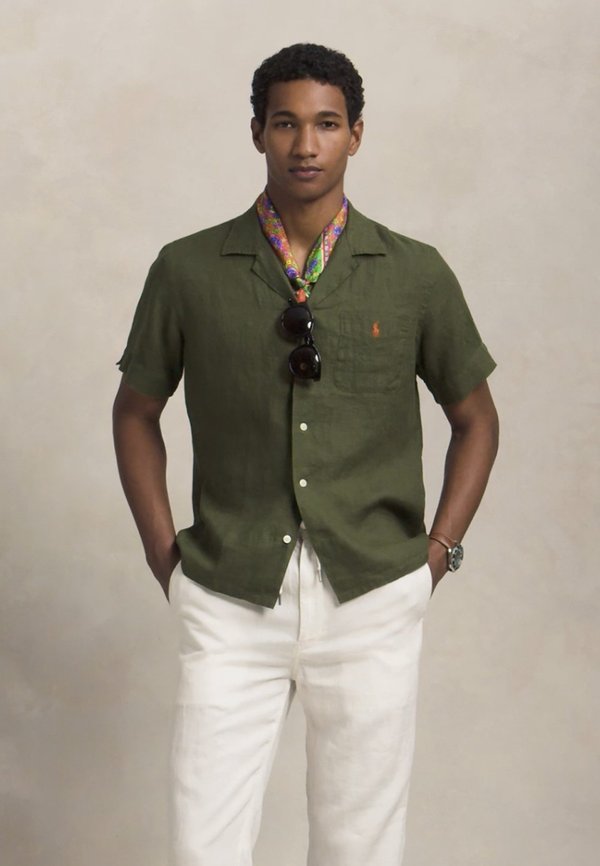HOT ! CLASSIC FIT LINEN CAMP SHIRT - Shirt - new olive