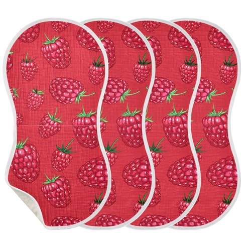 J JOYSAY Raspberry Red Baby Burp Cloths for Boys Girls Large 22''x11'' Cotton 4 Layer Milk Spit Up Rags for Drool Babies one sizex2 4