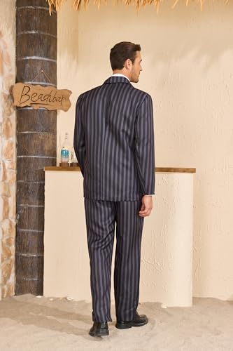 Men's 1920s Gangster Costume Pinstripe Suit Blazer Jacket Shirt Pants Set with Necktie Halloween Cosplay Outfits 1