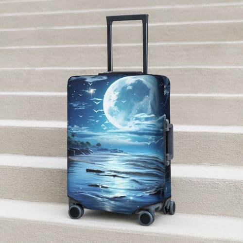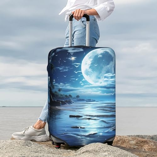 HOT ! Elastic Travel Luggage Cover for Suitcase Tsa Approved Stretch Scratch-Resistant Suitcase Protector Cover Washable Moon Over Ocean Baggage Covers Fits 18-32 Inch Luggage Case