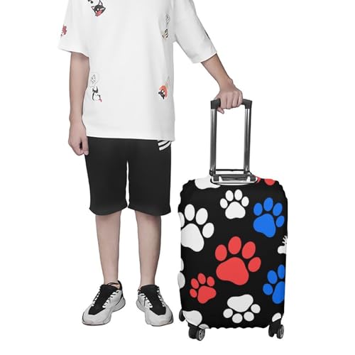 HOT ! Red Blue White Dogs And Cats Paws Elastic Luggage Cover Suitcase Protector for 19-32 Inch Suitcases | Universal Stretchable Travel Bag Cover | Anti-Scratch, Washable with Zipper Closure M