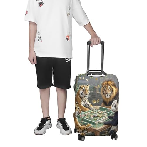 Divine Beasts Playing Mahjong Luggage Cover, Elastic Luggage Protector Fits 19-32in Suitcases, Washable & Anti-Scratch Suitcase Cover for Men Women XL 1