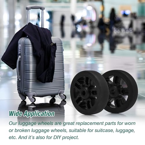 • Premium Material: Crafted from superior rubber and robust metal bearings, our luggage wheels ensure quiet operation, impressive resilience, and excellent load capacity for an unmatched rolling experience.