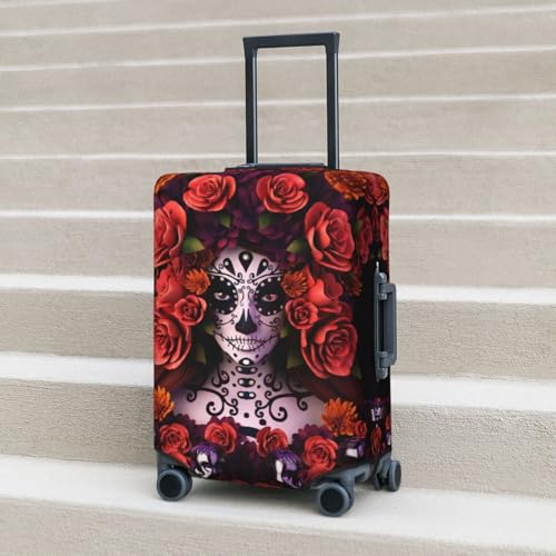 HOT ! Day Of The Dead Sugar Roses Skull Print Luggage Covers, Elastic Travel Suitcase Covers, Anti-scratch, Fits 22-24 Inch Luggage
