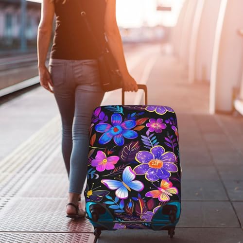 HOT ! Colorful Flower Butterfly Luggage Cover Washable Suitcase Cover Anti-Scratch Luggage Protector Covers Elastic Luggage Identify for Suitcase S fits 18-21 Inch Luggage