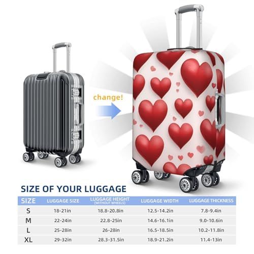 • Designed With Four Sizes (S: 18-21 In, M: 22-24 In, L: 25-28 In, Xl: 29-32 In), This Red Hearts Print Suitcase Cover Ensures A Fit For Your Travel Luggage, Whether Its A Carry On Or Larger Suitcases. Protect Your Luggage From Dust, Scratches, And Other Damages During Travel.