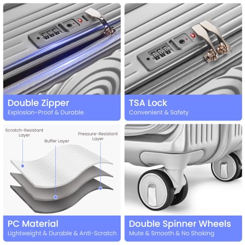Luggage Sets 3 Piece(20/24/28), Expandable Carry On Luggage with TSA Lock Airline Approved, 100% PC Hard Shell and Lightweight Suitcase with Front Pocket and Spinner Wheels (Silver) 4