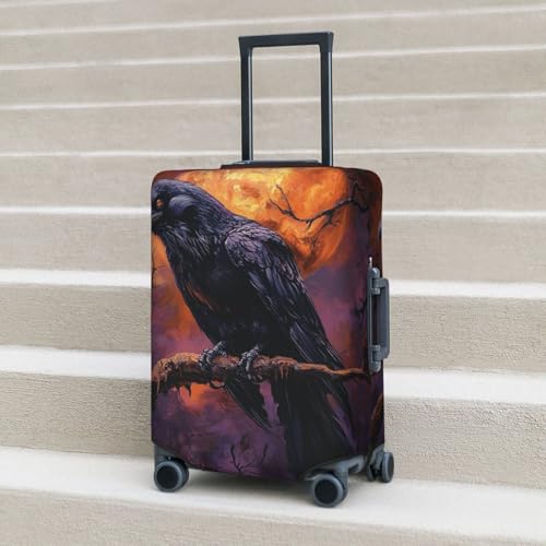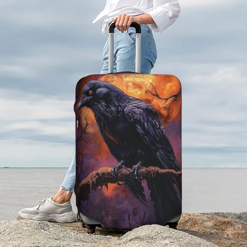 Gothic Raven On Branch Elastic Travel Luggage Covers Dustproof Scratch-Resistant Suitcase Protector Fit 22-24 Inch 6