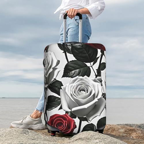 Luggage Cover Washable Elastic Suitcase Covers Black White and Red Roses Travel Baggage Cover Fashion Anti-scratch Suitcase Protector Decoraitve Covers Fits 18-32 Inch Luggages Large 1