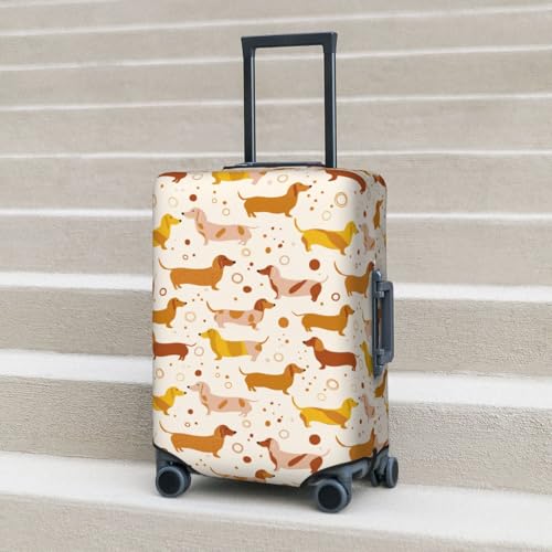 • Versatile Travel Accessory: Compatible with most standard upright suitcases where the top handle is centered. This Cartoon Cute Sausage Dog Print luggage case cover is a useful carry on cover protector or baggage cover. It fits easily over your large luggage cover and acts as a barrier between your case and external wear