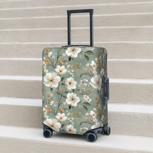 Luggage Cover Protector - Bright White Florals Print Suitcase Covers for Luggage Fit 18-21 Inch Suitcase 1