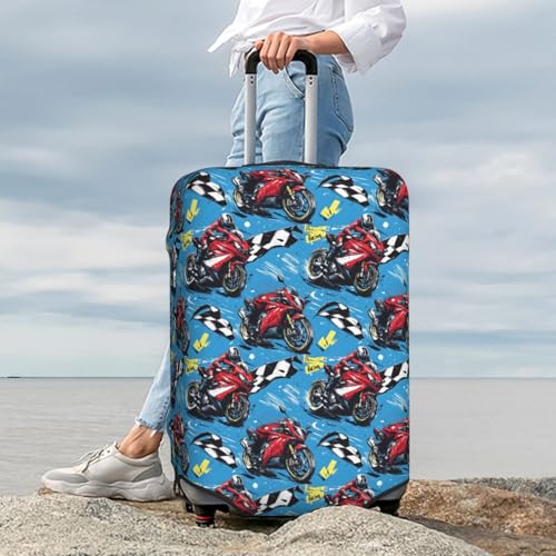 HOT ! Luggage Cover Protector - Red Motorcycle Rider Print Suitcase Covers for Luggage Fit 22-24 Inch Suitcase