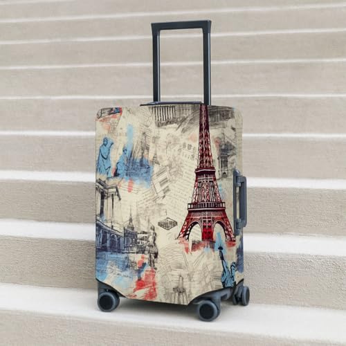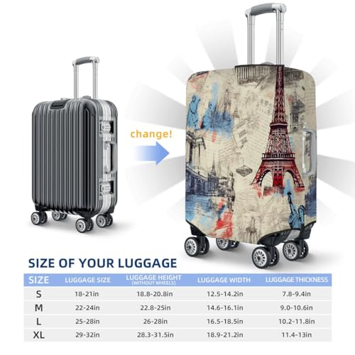 HOT ! Retro Eiffel Tower London New York City Stretchable Luggage Covers for Suitcase TSA Approved, Dust Proof and Scratch Resistant Travel Luggage Protector for Carry On (22-24 in)