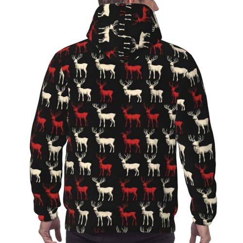 Hoodies For Men - White Red Deer Print Long Sleeve Casual Men'S Hoodies & Sweatshirts Pullover With Pocket 1
