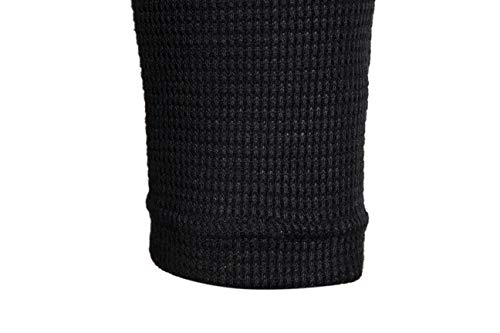 Men's Causal Pullover Hoodie Lightweight Solid Color Hooded Sweatshirt Tops Long Sleeve Waffle-Knit Henley Shirt 6
