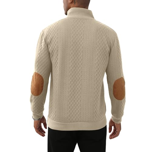 Lexiart Mens Casual Knitted Pullover Sweater Long Sleeve Stand Collar Vintage Button Sweaters with Elbow Patches 4