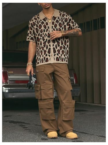 Men's Crochet Button Down Summer Sweater Vintage Striped Short Sleeve Cardigan Beach Knit Tops 4