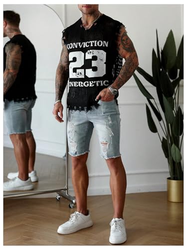HOT ! Men's Letter Graphic Sweater Vest Y2k Ripped V Neck Sleeveless Knit Tops
