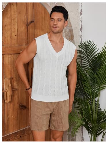 More information about OYOANGLE Men's Cable Knit V Neck Sleeveless Sweater Vests Solid Casual Tank Tops Knitwear