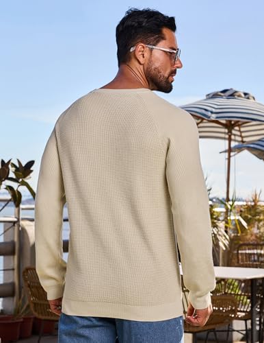 Vssjavun Mens Crewneck Pullover Sweater Waffle Textured Long Sleeve Casual Knitted Sweaters 6