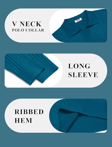 HOT ! COOFANDY Mens Knit Polos Long Sleeve Casual Sweater Polos V Neck Collared Sweater Golf Polo Sweaters and Pullovers