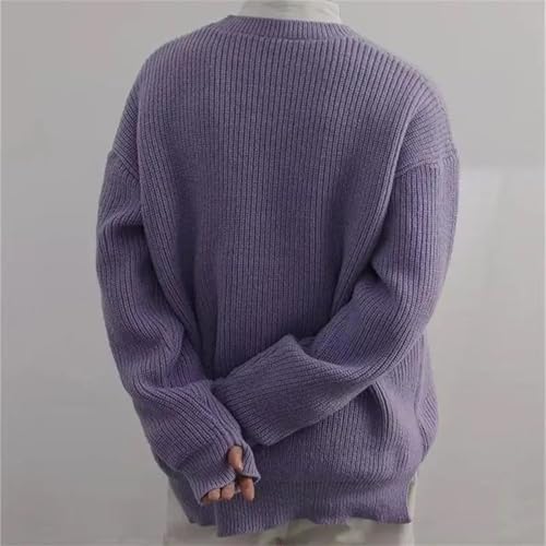 HOT ! Men Oversized Knit Sweater Solid Color Loose Fit Crewneck Pullover Soft Purple Jumper Black Tops