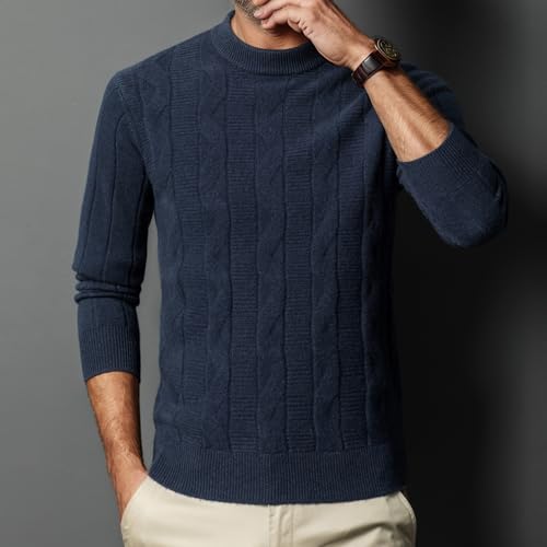 Mens Mock Turtleneck Sweater 100% Wool Fashion Classic Twisted Knit Long Sleeve Pullover 6