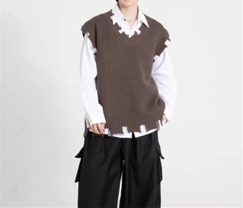 Mens Sweater Vest Vintage Loose Fit Lightweight Knit Sleeveless Pullover Waistcoat 6