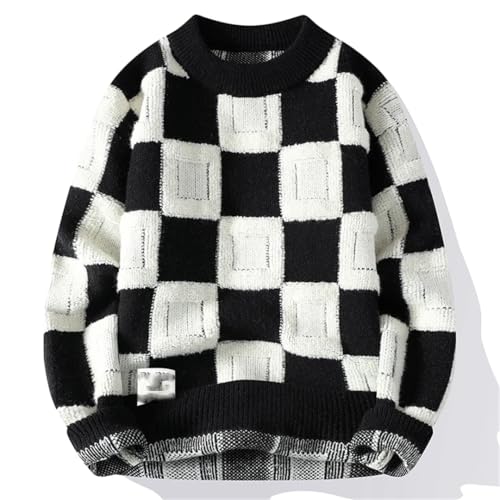 Men Plaid Sweater Knitted Hip Hop Harajuku Pullovers Oversized Casual O-Neck Vintage Sweaters 3