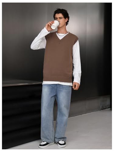 SHENHE Men's V Neck Sleeveless Plain Soft Sweater Vest Pullover Preppy Top 5