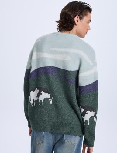 • 【Features】Mens vintage oversized knitted sweater, cute unique graphic printed, cow print sweater, vintage design and crewneck style add a touch of retro charm to any outfit, oversized fit shows a relaxed and effortless vibe