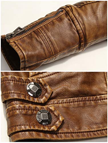 PASOK Men's Faux Leather Jacket Vintage Stand Collar Motorcycle PU Leather Outwear Coat 5