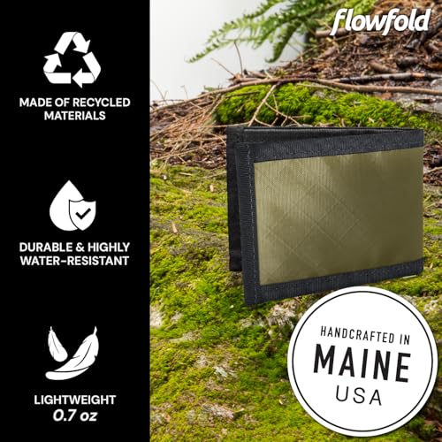 HOT ! Flowfold Vanguard Recycled Material Bifold Wallet | Slim and Durable with Cash Pocket, Two Hidden Card Pockets and Two ID Windows | Holds 10-12 Cards | Minimalist Wallet Made in USA | Olive Green