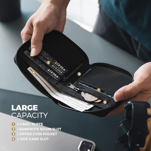 • Large Capacity - Comes with 1 zipper pocket for coins or other small items, 1 banknote room for your cash, receipts, and bills, 4 card slots, and 2 side slots that offer enough space for your ID Card, bills, and about 11 cards. Large capacity design meets all your outdoor daily traveling items.