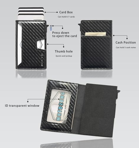 • (Wallet Capacity) The MRTDZENG slim and compact men's wallet can hold up to 6 cards in the aluminum compartment. The external PU cover can hold 1 card, and the internal ID window on the front of the PU cover holds 1 card, for a total of 8 cards. The back of the wallet has a dedicated cash slot that can hold 5 bills