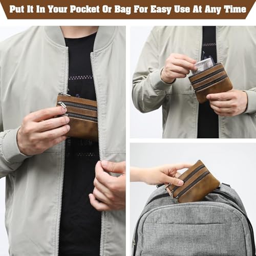 Real Leather Coin Purse for Men Genuine Real Leather Zippered Keychain Wallet Pouch for Coins (Blue) 5