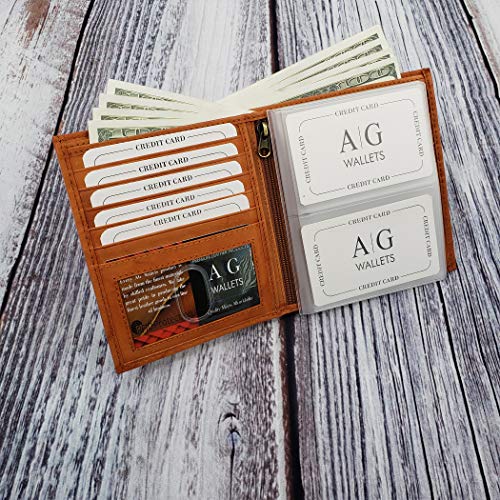 More information about ag wallets Men's RFID Genuine Leather European Bifold Wallet Hipster 2 ID Windows Tan