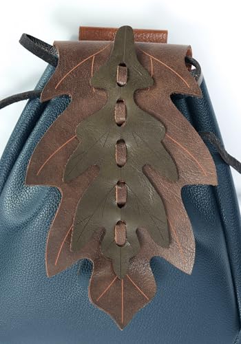 PROCOS Renaissance Belt Pouch Coins Purse Drawstring PU Leather Leaf Medieval Waist Bag for LARP Ren Faire Halloween 1
