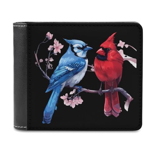 HOT ! Cardinal Bird Blue Jay Men‘s Bifold Wallet with Front Pocket and Credit Card Holder for Daily Travel Work