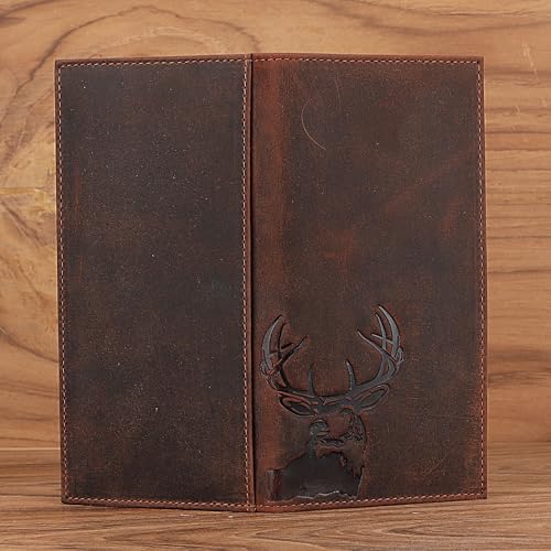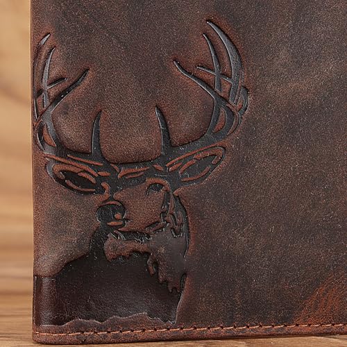 • ✅ FULL GRAIN COWHIDE LEATHER WALLET - Deer Long Bifold Wallet Crafted in our exclusive burnished full grain leather, This masculine men's leather Long Bifold Wallet features our Whitetail Deer embossed graphic , With a softens naturally that is very smooth to the touch and will look terrific even as it ages with everyday use