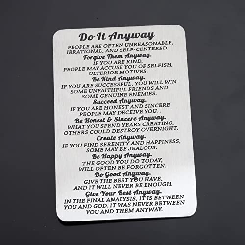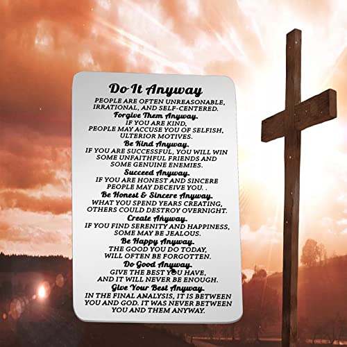 LQRI Religious Wallet Card Gift Scripture Gift Do It Anyway Mother Teresa Quote Wallet Card Christian Church Gift (silver) 1